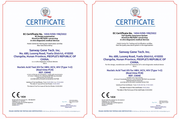 5月23日,BB贝博艾弗森生物全资子公司圣维基因研发的乙型肝炎病毒、丙型肝炎病毒、人类免疫缺陷病毒(1+2型)核酸检测试剂盒(PCR-荧光法),简称血筛核酸检测试剂盒,成功通过欧盟公告机构认证(CE List A),这是继乙肝、丙肝和艾滋三款核酸检测产品后,BB贝博艾弗森生物拿下的第四个CEList A认证。